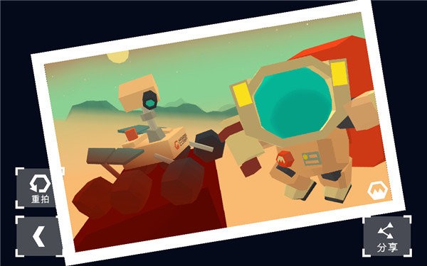 游戏的画面简约唯美,采用lowpoly风格,场景丰富多样,还有自拍功能可以解锁成就。燃料有限,每次跳跃都会消耗能量,如何合理分配燃料是关键。火星地形复杂,高低起伏的山丘和远距离的平台增加了挑战性,需要反复练习才能掌握手感。