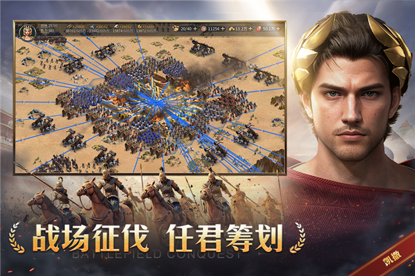 跳出三国局限,波斯、罗马、华夏、维京、不列颠五大文明盟军混搭,玩出新花样。资源不足免费征兵,充足则倍速征兵,轻松组建百万大军,攻城略地快人一步。