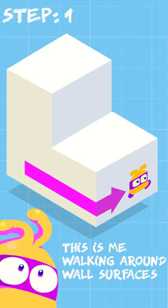 玩家在游戏中所看到的将会是一个3D的方块场景,而小机器人只能够在这个方块的表面上进行移动,而不同的面上将会有不同的机关和陷阱等待着小机器人;