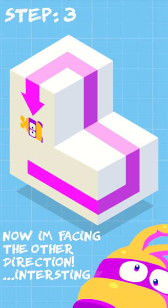 随着游戏的推进,场景中的元素会更加多,甚至会有别的方块拼接起来,玩家可以让小机器人移动到另外一个方块上继续冒险和挑战!