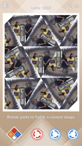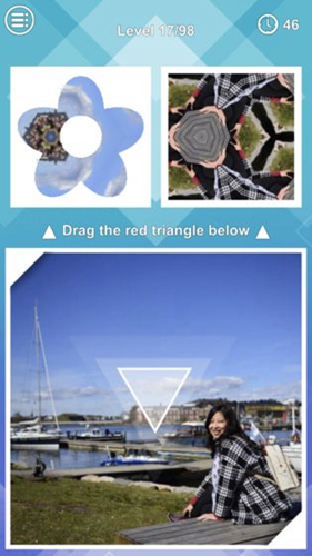 不过想要通关,就要在这纷繁的图像中,需要通过拖动三角在照片中,找出隐藏在照片中的与那一样的万花筒图案。