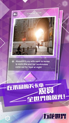 《万花世界》是一款很有趣的手机游戏,玩法新颖,画面色彩丰富,让人感觉非常放松。游戏灵感来源于北海道小樽的万花筒博物馆,玩家可以在游戏中欣赏各种独特的万花筒图案,并通过拖动三角形在照片中找到隐藏的图案来通关。游戏还新增了DIY分享功能和多种玩法,可以制作有趣的图片送给朋友或爱人,甚至恶作剧用。开发者希望这款游戏能带来艺术和生活的美好体验。