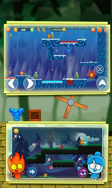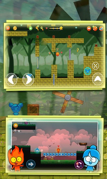 3、在游戏中玩家需要操控冰和火过关,利用左右按键操控角色的移动,右边为切换角色和跳跃按键