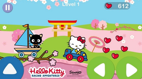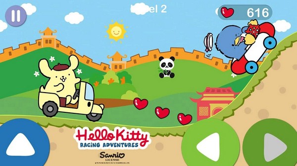 卡通风格的赛车竞速类型的手机游戏,游戏中可爱的凯蒂猫有着一辆非常可爱的小汽车。
