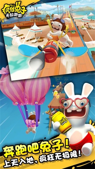 疯狂兔子无敌跑跑中文版是一款非常刺激好玩的休闲跑酷题材手游,该游戏是以疯狂兔子为背景的,采用了卡通的画风,在这里玩家将控制兔子不断的进行跑酷,同时在跑酷的过程中还可以收集沿途中的金币等,此外还有着各种道具来帮助玩家进行跑酷,让大家可以更加轻松的通过每一个关卡,也能更好的享受到跑酷的极致乐趣。