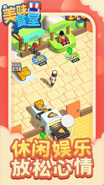 《美味食堂》是一款超级好玩的餐厅经营游戏,你可以在这里体验当老板的乐趣。游戏里有很多关卡需要完成,每个关卡都有不同的任务,比如做出顾客满意的菜品或者合理安排资源。赚到金币后可以升级设备或提升角色能力,这对餐厅的发展很重要。