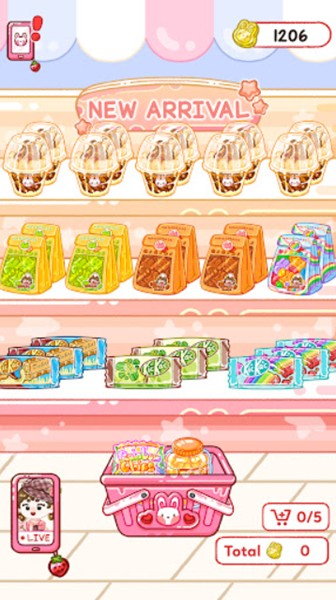 1、游戏以关卡的形式展开,每个关卡都需要启动直播,随后收到来自观众的点单,制作对应颜色与配料的果冻,制作的过程按部就班,休闲而解压。