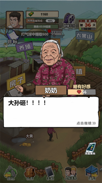 3、进入到自家院子界面,包括养殖、房子、种植和大黑山等场景,不同的场景有不同的任务,