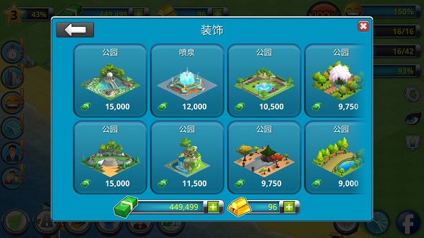 在游戏的建筑栏目中,玩家选择社区或者是装饰品,然后在里面选择要建造的建筑,在这两个大类中,每个建筑都能提高一定的快乐值。玩家如果发现屏幕中的笑脸的进度值不足100%的时候就要建造提高幸福快乐值的建筑哦。