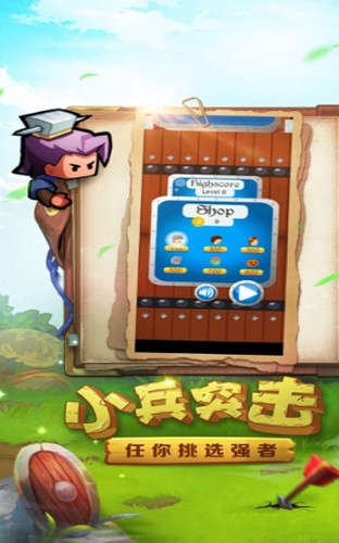 小小大兵是一款非常火爆、玩法有趣的闯关冒险类手机游戏。这款游戏的画风非常可爱,里面的角色都是非常呆萌的卡通形象,让人感觉眼前一亮。在游戏中,玩家们将扮演一个小兵,然后开启一段冒险之旅。游戏里,玩家们可以去学习各种各样的技能,并增加自己的属性来让自己变得更强。游戏中的关卡非常多,里面隐藏了很多危险,但是也有很多的机遇。如果你喜欢这款画风可爱的游戏的话,那就赶紧过来下载吧。游戏介绍