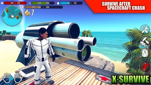 在飞船紧急降落后在沙岛上生存。工艺和建造海景房子。使用地面车辆进行勘探,挖掘工艺材料的洞穴等等!