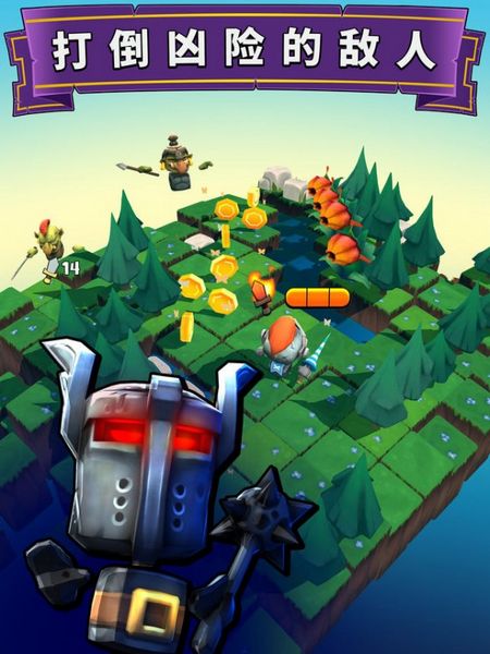 1、控制自己的屏幕上的骑士,摧毁怪物,得到宝藏来完成任务