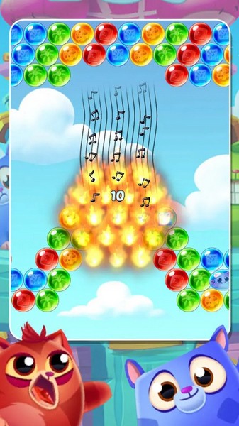 1.五彩缤纷的泡泡给人带来了更多的视觉享受,玩家可以快速的区分每种泡泡的颜色并进行发射,只有相同的颜色连接到一起才会进行消除。