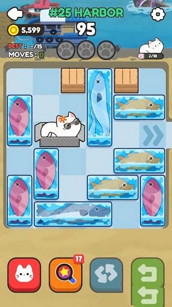 1,根据模块放置的方向,模块只能上推或下推、左推或右推,推动流浪猫拯救舞台,拯救增加您的猫猫收藏,各种小可爱。