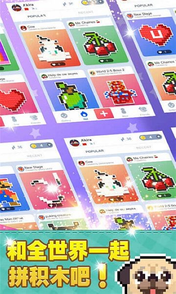 像素积木2是一款非常好玩的像素风休闲益智手游,玩家需要通过自己的想象力完成拼图。值得一提的是,游戏在第一部的基础上新增了许多玩法,玩家可以体验到自由建造玩法,也可以体验到冒险探索等玩法,游戏可以满足不同玩家的需求。此外,游戏提供关卡编辑功能,玩家可以自定义独属于自己的拼图,新的拼图可以留着自己玩,也可以上传让其他玩家挑战。