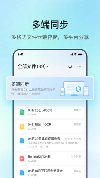 讯飞极智是一款专为科大讯飞录音笔设计的手机软件,功能强大又方便。它能快速将会议录音上传到云端,还能通过蓝牙连接录音笔,让用户随时随地录音、编辑和转文本,特别适合需要高效处理音频内容的人。