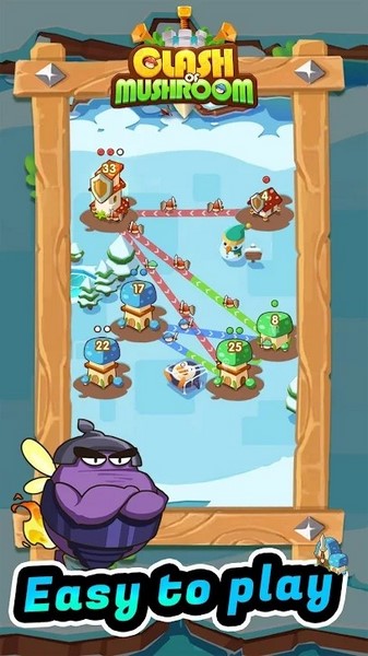 《蘑菇冲突》是一款简单又有趣的策略游戏,操作起来特别方便,只需要拖动士兵就能攻打别人的城池。规则也很直接,兵力多就能占领对方的城堡,不过每次战斗都会损失一些士兵,但只要不断占领新城堡,兵力就会越来越多。