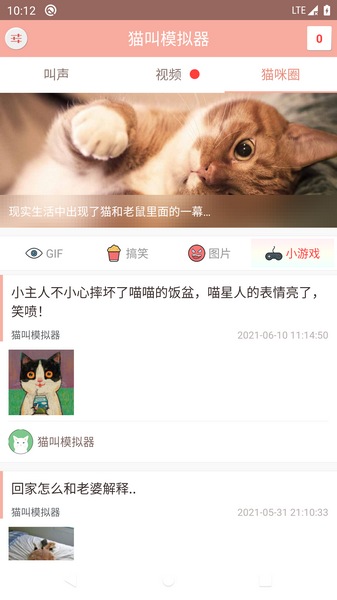 我们一起学猫叫,喵喵喵喵喵~这首歌相信不少小伙伴们都有听过吧,今天小编带来的就是一款真的可以学猫叫的软件,它就是猫叫模拟器。猫叫模拟器是一款非常好玩的猫咪叫声模拟app,如果你的家里也养有可爱的猫咪,那么不妨试试用这款app和猫咪进行一次跨物种的互动吧~这款app上有着非常多种不同状态下的猫咪叫声,包括求搭讪、可爱撒娇、委屈低落、生气发怒、肚子饿等等,看看不同的叫声播放之后你的猫咪会有什么样的反应吧~