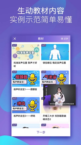 -声乐教练团队合理编排练习步骤,设计不同时长的课程,保证科学的练习强度。