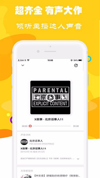 支持后台播放,自动跳转下一集,解放你的双眼与双手,真正的闭上眼睛听世界!