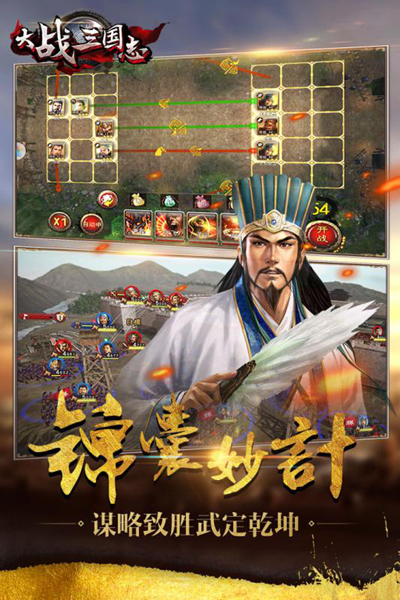 三国志28年经典传承,纯正还原单机经典策略元素!完美还原三足鼎立之盛世,极限谋略让战场风云突变,谈笑间定天下大事,挥手间横扫千万军! 策略计谋是一场战争胜败的关键,如何指挥你的军队才是重中之重。锦囊妙计让你尽情挥洒才华,任意组合用出华丽战法!效仿孙子兵法,三十六计让敌人苦不堪言! 《大战三国志》画风精致写实,三百余位强力武将听候调遣,校场演武、势力争霸、跨服夺帅等多种竞技玩法让你尽情展现实力!