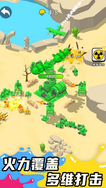 涂鸦军团是一款使用3D模型打造的战争策略类游戏,玩家可以在这里招募很多强大的士兵进行战斗。且游戏的背景是设定在未来,有很多高科技武器可以研发使用。虽然个体单位是否强大很重要,但是合理的进攻策略则更是决胜负的关键。此外它的画风偏向可爱的风格,让小朋友也能进行玩耍,并且感受和敌人使用策略进行博弈的乐趣。