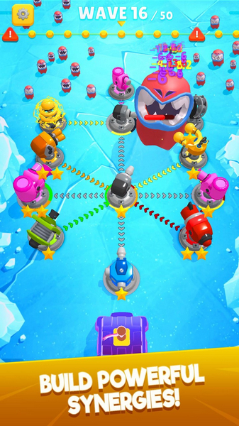 在战斗中结合合并炮塔与合并炮塔,以提高战斗力并释放无敌。发现塔之间的无限协同压制敌人!玩自动防御以获得不间断的乐趣,同时清除流氓敌人的巨浪并完成令人兴奋的世界。