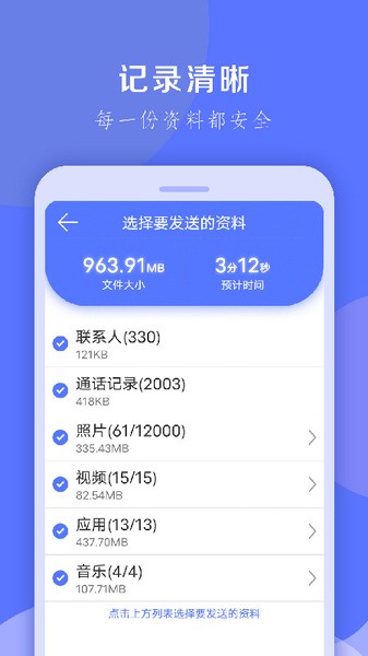 值得一提的是,换机克隆大师在数据传输的安全性方面做得十分到位。它采用先进的加密技术,确保了个人信息在迁移过程中的绝对安全。此外,该应用还提供了选择性传输的功能,允许用户根据实际需求精确控制哪些数据需要被迁移到新手机上,这一点对于那些注重隐私保护的用户来说尤其重要。通过这些实用的功能,换机克隆大师成功地简化了换机流程,提升了用户体验,成为每一位安卓用户不可或缺的好帮手。