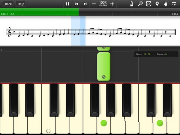 3、内置的节拍器保持计时控制。每一首内置乐曲皆有提供提示,显示应该使用哪些手指。为您所导入的歌曲添加您自己的手指提示
