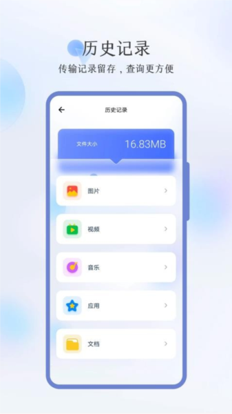 4、历史记录: 应用会保存用户的历史传输记录,方便用户随时查询和管理,避免重复传输。