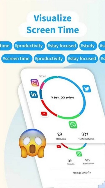 应用使用限额:暂时屏蔽任何你过渡使用的应用,帮你保持专注。