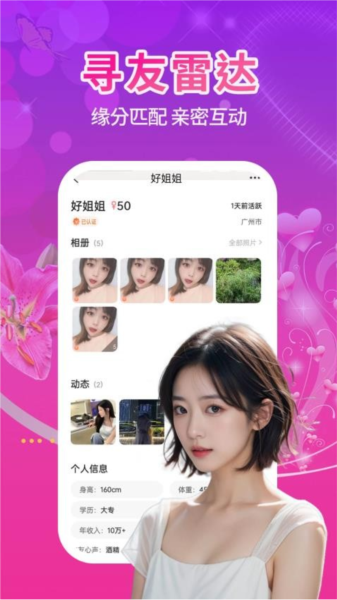 该应用还具备丰富的信息概况功能,让你能够轻松查看同城用户的详细资料,并了解他们的位置和距离。通过这些功能,单身附近觅友官方版为用户提供了一个便捷且真实的社交环境,帮助他们更快地发现身边潜在的伴侣。
