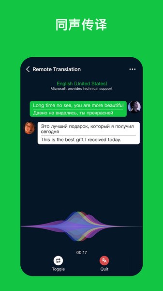 发送给对方的文字会根据对方选择的语言进行即时翻译