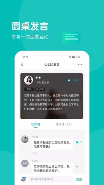2、帮助您快速找到相同经历的人产生共鸣,将社会身份的压力抛出后畅所欲言;