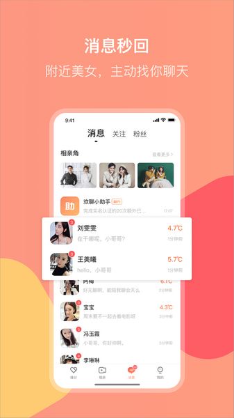 附近交友,快速的查找自己周边的单身异性信息,交友更容易;