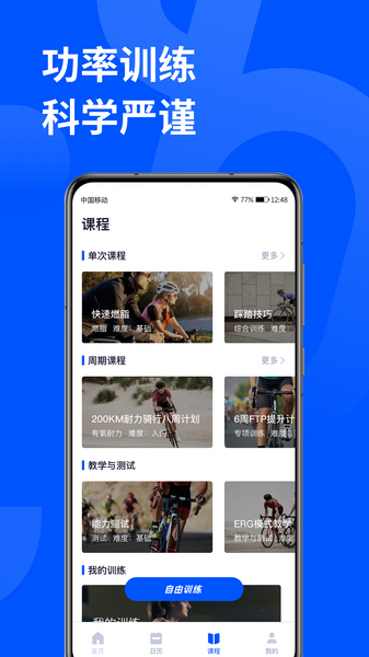 2、平台内提供了官方训练计划,无论您是骑行新手还是大腿,都有相应的训练计划。您也可以在平台内自建适合自己的训练计划,功率提高看得见。