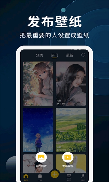 动态壁纸,一款超好用的手机锁屏、桌面主题美化壁纸制作软件,拥有超多高清动态壁纸,告别单调静止的手机画面,给手机增添更多的美观性和趣味性,让你所爱,所想,所创意的视频壁纸跃动于手机屏幕之上。