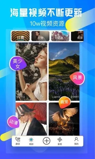 【海量视频铃声】视频内容类别多样,有萌宠、风景、明星、网红、人物、古风、电音、动漫、影视、体育等,丰富好玩的视频铃声任你选;