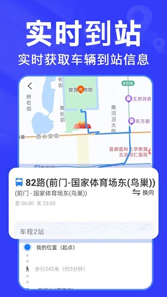 提供地图导航可以跟着地图导航前往附近的站点乘坐公交车出行。