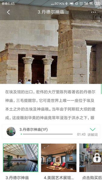 大都会艺术博物馆app是一款专业的电子导游平台,针对大都会艺术博物馆打造,内置实时定位功能,能够自动根据旅客的当前定位来介绍相应的内容。这里还有超多旅客们留下的攻略游记和最佳游览路线,大家完全可以根据自己的想法来进行选择。作为由英国指定合作的线上景区智能讲解器,大都会艺术博物馆平台集景点讲解、景区推荐以及附近交通指南等功能于一体,非常实用。