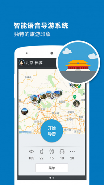 长城导游是一款专为想要前往长城自由行的旅客打造的智能旅游软件,其采用了盖度智能的语音导游系统,会实时定位用户所处位置,并在用户到达某处景点时进行讲解,让你走到哪听到哪,无需聘请导游或者跟团,就能轻松就能了解景区历史文化,带来更加优质的旅游体验!不仅如此,更有相应的景区地图,让你清晰看到自己所处位置!