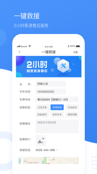 3、造福广大的用户出行的APP。软件是为了推广新能源汽车的平台,环保低能,一站式服务,提供车辆租赁、网点定位更有一键式道路救援等等多样服务