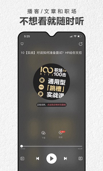 杂志音频版、每日商业资讯晨报、职场课程、播客等——通勤、休闲时间,你也可以通过《第一财经》杂志听到更多商业资讯了。