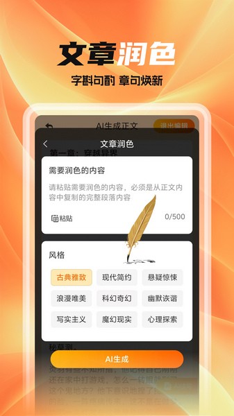 提供了文章润色功能,可以进行多样风格的润色,满足不同用户需求。