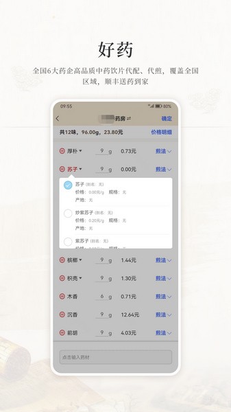 配送到家:平台合作的六大药企提供高品质中药饮片代配和代煎服务,覆盖全国区域,可以及时将药材送到患者家中。