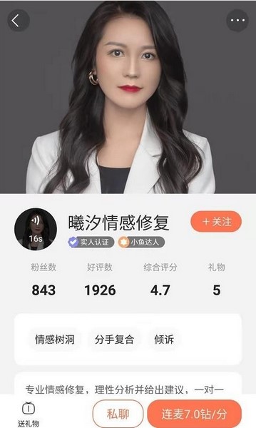 “小鱼倾诉”是一款在线心理咨询APP,提供各类情感问题的解答服务,帮助用户以更健康的心态面对感情。软件功能很齐全,涵盖异性心理分析、关系升级、挽回破裂感情、处理情感危机以及解决离婚难题等多方面内容,满足不同用户的需求。每个咨询师都有详细介绍,方便选择适合自己的专家。