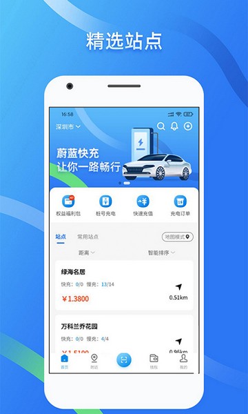 1、精选站点,充电的地方会精心的为你推荐,推荐优质的充电地点