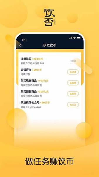饮否是一款主打酒类产品购买的软件,想要宴请宾客或者自己小酌一杯,没有好酒可不行,但是又没有合适的购买渠道的话,那么不如尝试使用这款软件吧!这里汇集了相当丰富的酒水可供用户购买,且酒类丰富,无论是鸡尾酒、威士忌、葡萄酒、红酒等全都有,满足不同喜好的用户进行购买!且通过使用软件还能获取相应的饮币,让你能轻松换取好酒!