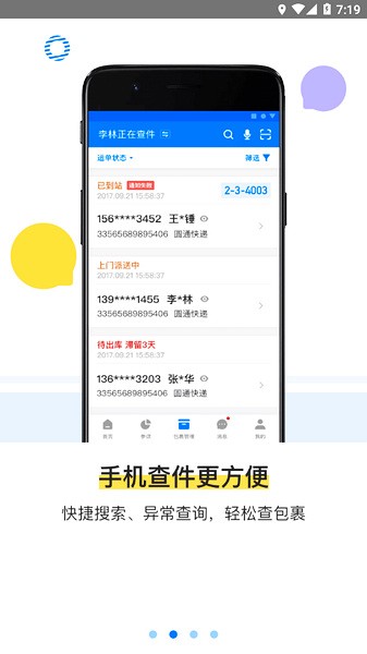 3、查件服务:可按照手机号、运单号、提货码进行查件,支持扫码和手动输入方式,精准查询且配合相关后续操作动作,操作节点系统展示、全程跟踪、安全无忧;