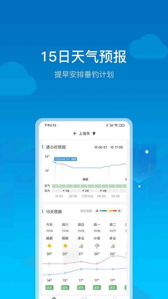 钓鱼天气app官方下载,数据精准,更新及时的手机钓鱼天气预报软件,一键获取未来15天天气,了解气压、风力、温度等信息,在线获取钓场天气,为钓鱼爱好者带来更多便利。
